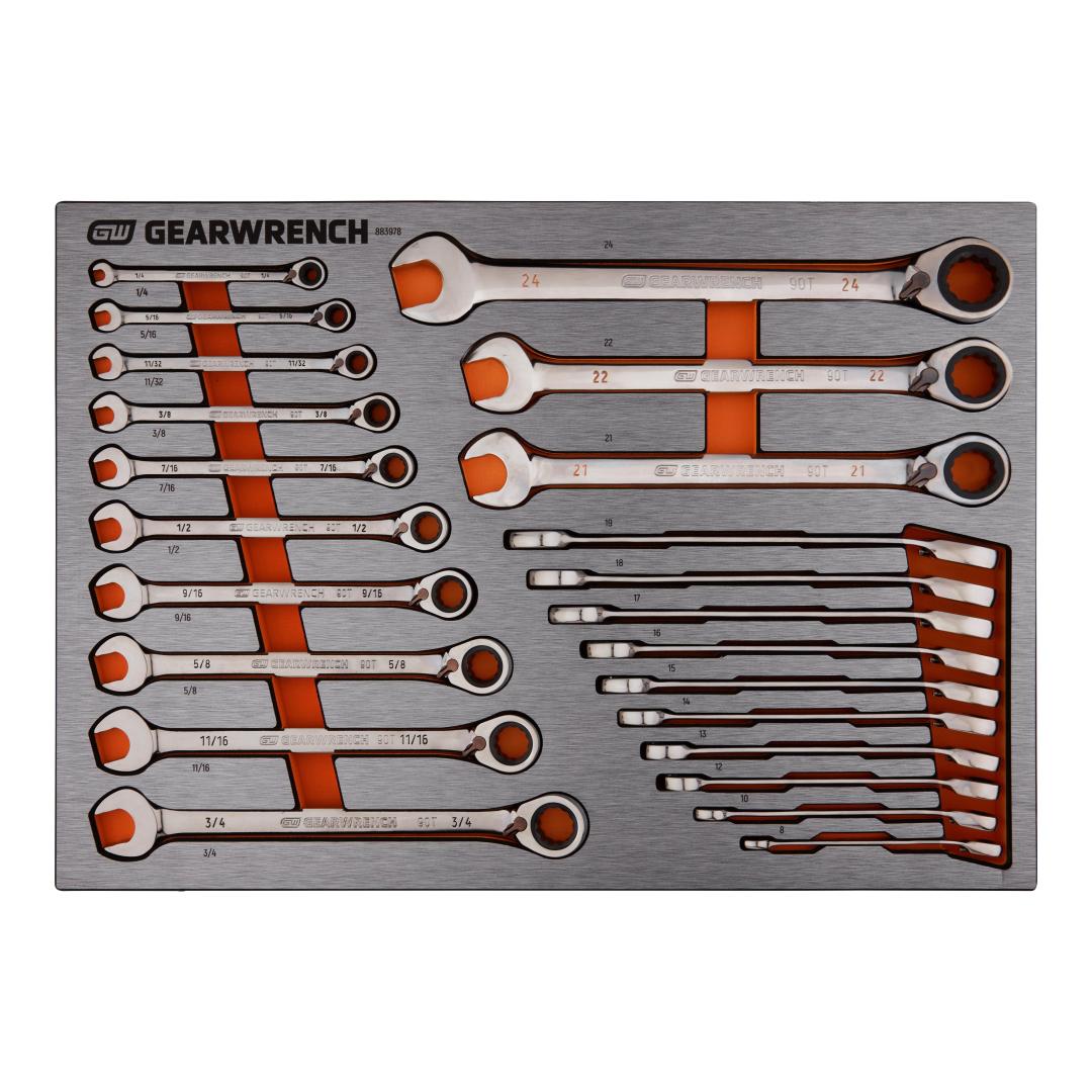 23 Piece 90T Reversible Ratcheting Wrench SAE/Metric EVA Tray Set