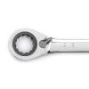 The reversible ratcheting combination wrenches from GEARWRENCH are a staple for every tool box. The flush-mounted reversing lever allows the user to switch motion left to right without needing to remove the wrench from the fastener increasing productivity. The 15° offset on the ratcheting box end allows for greater knuckle clearance and safer access to the fasteners. The ratcheting box end is designed to need as little as 5° to move fasteners versus 30° for standard wrenches and features off-corner loading for a better grip on the fastener and reduces fastener rounding. The wrenches are made from strong alloy steel with a bright, full polish chrome finish.