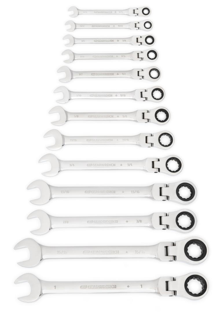 The GEARWRENCH ratcheting combination wrenches are the original patented ratcheting wrench! The ratcheting box end is designed to need as little as 5° to move fasteners versus 30° for standard wrenches. The wrenches are made from strong alloy steel with a bright, full polish chrome finish. The ratcheting box end features off-corner loading for a better grip on the fastener and reduces fastener rounding. They’re available in various lengths and styles, including: XL length, stubby, flex, stubby flex, and locking flex.